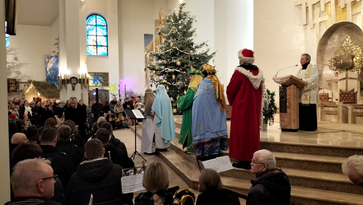 6 stycznia 2026r witaliśmy pochód Trzech Króli w parafii Matki Boskiej Częstochowskiej i uczestniczyliśmy we Mszy św o 11:30.
